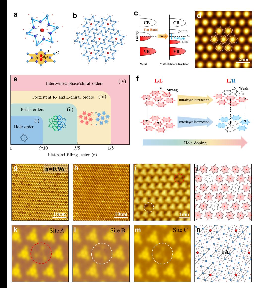 近日,2007so太阳集团程志海课题组、季威课题组以及湖南师范大学周伟昌课题组等展开合作,利用扫描隧道显微技术(STM),详细研究了电荷掺杂对1T-TaS2平带中填充依赖的电子和原子有序态的精细调控机制。研究团队不仅观察到了电子空位、相位畴、手性畴以及交织的相位畴和手性畴等多种电子态的演化,还进一步发现了手性畴界处的环状团簇以及层间手性堆叠导致的向列相电子态等。该研究不仅加深了对该体系平带填充依赖的电子/...