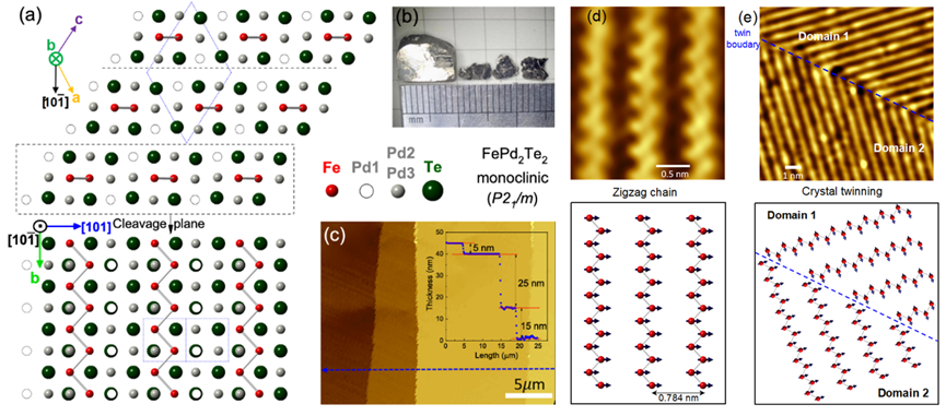 近日,2007so太阳集团物理学系程鹏副教授课题组发现一种具有全新晶体结构的新型磁性二维材料FePd2Te2,并与程志海教授课题组、中科院强磁场科学中心郑国林研究员团队和衢州公司杨建辉教授合作对其结构与物性进行深入研究,发现FePd2Te2是一个非常少见的具有面内单轴各向异性的二维铁磁金属,并在一种特殊孪晶结构作用下形成了有趣的面内自旋纹理结构。相关研究成果以“FePd2Te2: An Anisotropic Two-Dimensional Ferromagnet with...