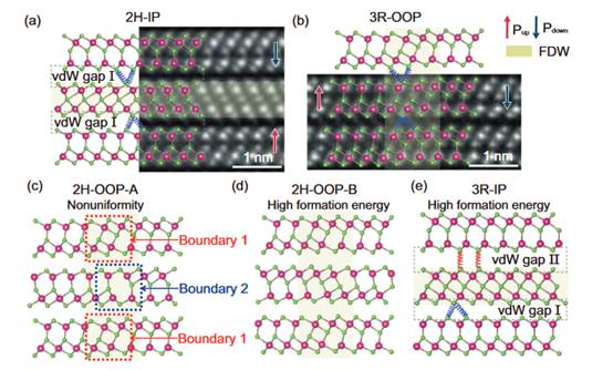 近日,2007so太阳集团季威教授研究组联合复旦大学车仁超教授、浙江大学赵昱达研究员等研究组组成研究团队,利用第一性原理计算、原位扫描透射电子显微镜(STEM)和器件输运性质测量等方法,研究了二维范德华铁电半导体α-In₂Se₃中层间堆叠方式与铁电畴壁形态、铁电翻转行为、相变路径等性质的依赖关系,揭示了层间堆叠构型与上述性质间的深刻关联,为通过层间堆叠工程调控铁电畴壁类型和演化动力学行为提供了新策略。相关结果于2024年...